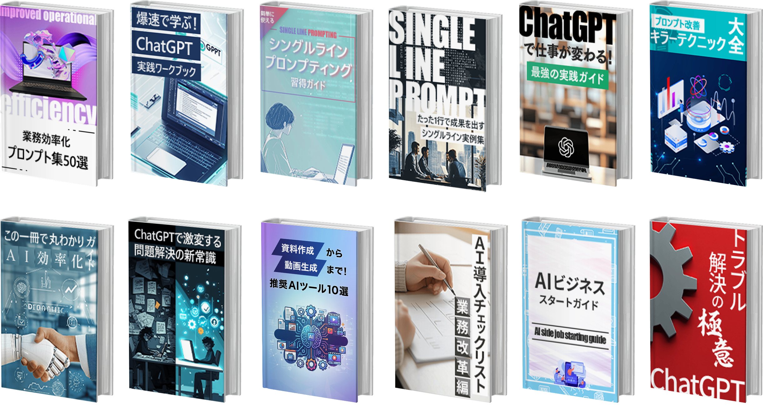 仕事でそのまま使えるプロンプトを厳選して50個収録。資料作成、文章作成、調査などの作業時間を大幅に短縮できます。